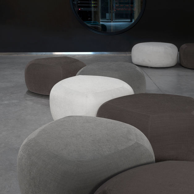 Pouf modular pentagonal. Evoca estructuras orgánicas, posibilitando distintas configuraciones espaciales. Zelda se adapta tanto a espacios privados como públicos.